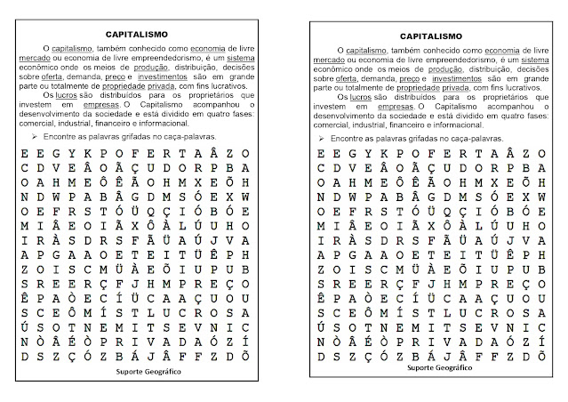 CAÇA-PALAVRAS CARACTERÍSTICAS DO CAPITALISMO
